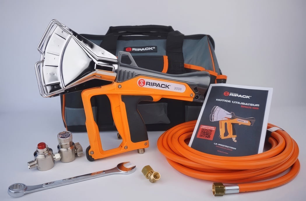 For added safety, the shrink gun is equipped with a short, rigid flame for precision, as well as a cold nozzle system and gas holder, which enhance user protection.