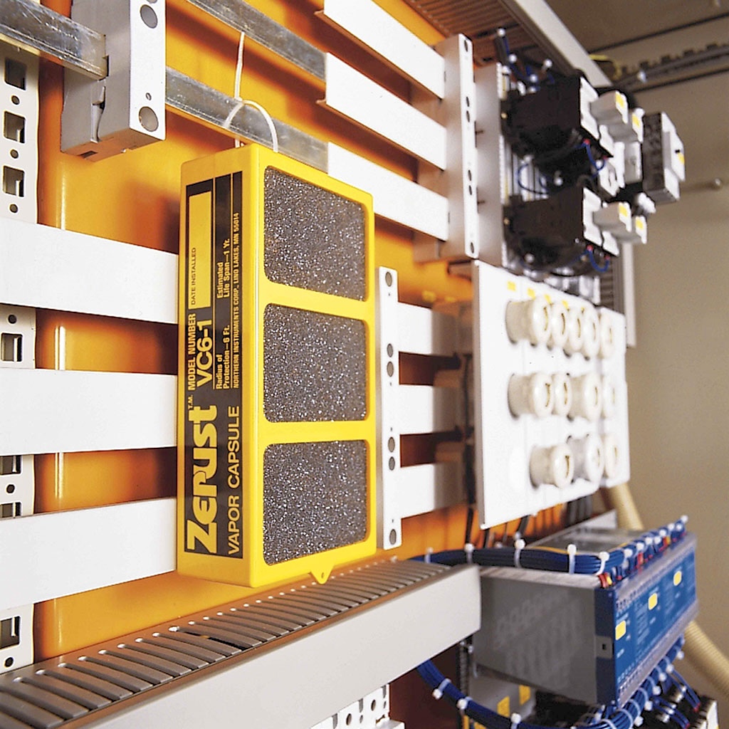 Zerust® capsules release volatile corrosion inhibitor (VCI) molecules. They are odorless and provide dry protection.